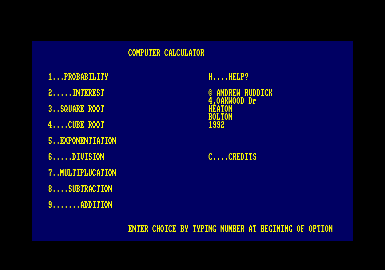 Maths Processor He's a very useful bit of code with some startling fun and novel additions. Maths Processor helps all budding Einsteins to solve everything from square roots to exponentiation simply by selecting the required function from a menu and inputting the data. But that's not all, a very original screen clearing routine will have you doing sums just to see it again and again. What happens? You'll have to type it in to see. Fortunately, the program's only 2K long so there's not much work involved. Andrew Ruddick of Bolton is the programmer behind Maths Processor and he's earned a well-deserved £20. Menu driven, no instructions needed.