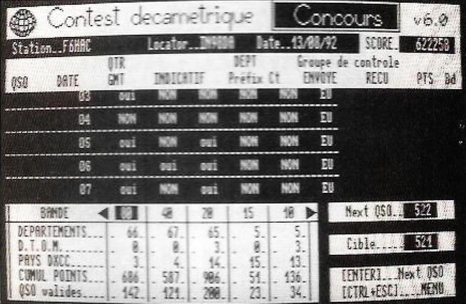 COUPE DU REF Vous le savez , je l'ai déjà écrit , la commission des courcourss du REF est très exigeante. Il a donc fallu concecoir un logiciel qui respecte presque à la lettre le cahier des charges. Le résultat est là, étonnant même puisque ce logiciel permet de traiter 2500 contacts ! C'est bien pour une station modeste. L'opérateur pourra suivre sa progression en permanence : le cumul des points est affiché, de même que les scores par bandes. La saisie est rapide, prenant en compte l'heure réelle (à régler dans la piase d'initialisation du logiciel) ou donnant la possibilité d'utiliser le programme après le concours en temps différé. Les doctes sont signalés très rapidement, le programme laissant toutefois l'occasion de valider la liaison. Le déplacement au sein du fichier s'effectue à l'aide des touches de curseur; l'accès rapide aux extrémités (début et fin) est prévu. Le dernier QSO entré n'apparaît pas immédiatement en queue de liste, la fenêtre écran restant positionnée sur le dernier QSO «cible». Ce qualificatif est attribué à la ligne que l'on peut éditer, afin de procéder à des modifications. Le logiciel intègre des fonctions de recherche sur des critères simples ou multiples. L'opérateur peut également afficher la liste de tous les départements, DOM, TOM, DXCC, contactés ou non, sur chacune des bandes. Enfin, le compte-rendu «papier» est présenté selon les exigences évoquées précédemment. En un mot, si vous possédez un CPC et que vous avez envie de faire la Coupe du REF 1993, n'hésitez pas ! Des logiciels présentés ici, c'est celui qui m'a le plus impressionné. CQ WW DX La disquette contient deux programmes : le logiciel de contest et un éditeur de préfixes permettant de tenir à jour une liste qui évolue presque tous les mois, au rythme des événements géopolitiques. Quand on lance le programme principal, celui du contest, on introduit l'indicatif se station mais aussi le locator (pourquoi donc ?) Comme le précèdent, CQWWDX permet de Travailler en temps réel ou en différé. J'ai regretté le fait qu'il faille remplir le champ DXCC Sors de la saisie des QSO, celui ci aurait pu, à mon sens, être déduit de l'indicatif par rapport à un fichier type. La zone n'est pas remplie automatiquement (comme c'est le cas sur les «grands logiciels» PC), ce qui obligera l'opérateur à bien écouter le report passé par le correspondant. . L'alarme sur les doubles fonctionne bien et l'on peut, à tout moment, jeter un coup d' oeil sur le tableau présent dans le tiers inférieur de l'écran résumant les scores (en nombre de contacts) par bande. Des fonctions de recherche et d'édition permettent de corriger les erreurs de saisie éventuelles. Après le concours, quand tout est corrigé, il ne reste plus qu'à procéder à l'impression du compte-rendu sur papier. Bon père, le logiciel recommande de vérifier que l'imprimante est bien connectée. CQWWDX admet jusqu'à 2500 QSO. Là encore, pour une station modeste, ce n'est pas si mal ! CAHIER DE TRAFIC Que vous soyez radioamateur, SWL ou cibiste, vous pourrez choisir ie type de cahier de trafic qui vous convient. Trois logiciels différents sont proposés ici aux amateurs. On commence par renseigner le programme sur les données propres à la station (puissance et antenne). Ma première réaction a été de dire «Pourquoi ne pas avoir enregistré ces données sur la disquette ?». Réflexion faite. cela permet les changements... Attention lorsque vous lapez l'année qui correspond au fichier que vous souhaitez charger car, si le logiciel offre la possibilité de vérifier que c'est la bonne disquette qui est dans le lecteur, il ne permet pas de revenir à la saisie de l'année si l'on s'est trompé d'où l'obligation de tout relancer.. Les QSD et les cartes QSL envoyées sont numérotés. Une touche permet la mise-à-jour rapide des cartes envoyées et reçues. Le programme offre des fonctions de recherche, simples ou multicritères. La recherche d'une station contactée est assez rapide pour ce type de machine. La sortie sur papier fait apparaître deux lignés pour chaque QSO. J'aurais préféré voir la date sur une seule ligne, c'est plus conventionnel ! Simple, il n'y a pas de gestion du DXCC ou autre fioriture, «TRAFFIC v5.01» (oui, avec deux «effes», comme en anglais) n'en est pas moins un logiciel utile et bien pensé, qui donnera à l'opérateur le goût d'un cahier de trafic bien tenu. TRAFFIC S.W.L. On reprend la même chose et on recommence sauf que. ici, deux grilles sont présentes à l'écran rappelant la forme de petites fiches cartonnées. Pour chacune des grilles, on remplira les rubriques propres aux deux stations entendues, sauf l'heure, la date, la fréquence et le mode qui demeurent communs. Là encore, les QSO sont numérotés ainsi que les cartes QSL... On retrouve toutes les fonctions de recherche, de correction et d'impression décrites pour les logiciels précèdents. TRAFFIC C.B. Avec 2 grilles présentes simultanément à l'écran. Les fonctions sont toujours identiques .... mais le produit est adapté : aux ciblistes, une initiative à saluer. Denis BONOMO [F6GKQ] , MEGAHERTZ magazine n°116- OCTOBRE 1992 * Si ces logiciels vous intéressent , contectez directement F6HAC.