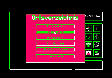 Viele Zuschriften erreichten uns, und wir benötigten eine Weile, um alles so richtig auszu werten. Die Ausw ahl fiel uns sehr schwer, da durchweg alle Einsendungen in ihrer Ausführung spitze waren. Hier nun die ersten beiden Plätze. Den zweiten Platz belegt Martin Schmid aus Moosburg. Er gewinnt einen CPC 464 plus mit Monochrommonitor. Seine Einsendung ist eine durch Einbau von Maschinencode stark beschleunigte Variante des Digiglobe-Prograrnms. In wenigen Sekunden isi der Globus in der jeweiligen Stellung aufgebaut. Ist das Bild fertig gezeichnet, so kann es durch Drücken einer Taste ausgedruckt werden. Ansonsten ist die Bedienung die gleiche wie in der Urversion. Das Programm finden Sie auf der DATABOX; auf dem 464 läuft es nur mit dem Emulator. Der Sieger des Digiglobe-Wettbewerbs ist Ronald Heitmann mit seinem aufwendigen Programm WinGlobe. Er erhält einen CPC 6128 plus mit Farbmonitor. Wie der Name schon ahnen läßt, handelt es sich bei dem Siegerprogramm um ein Programm mit grafischer Benutzeroberfläche. Leider funktioniert es nur auf dem CPC 6128. Die abgetippten Programme speichern Sie alle auf einer Diskette. Nun starten Sie WINLINK, welches die lauffähige Datei erzeugt. Nach dem anschließenden Start von STAEDTE.GEN, welches die leeren Dateien fürdie Ortsverwaltung erstellt, ist das Programm lauffähig. Die Bedienung erfolgt mildem Joystick oder den Cursortasten. Das gesamte Programm ist so gestaltet, daß die Tastatur so wenig wie möglich bemüht werden muß. Hat man eins der zwölf Icons angewählt. so startet man die entsprechende Aktion mit dem Feuerknopf. Zusätzlich ist noch eine Hardcopy-Routine dazugekommen, mit der auf verschiedene Papiergrößen gedruckt werden kann. Da sich das Programm einfach bedienen läßt, haben wiraus Platzgründen aufeine ausführliche Beschreibung im Heft verzichtet. Auf der DATA BOX liegt aber eine Programmbeschreibung vor. jg, CPCAI