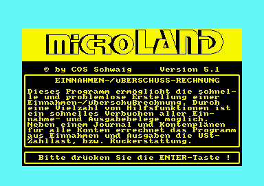 Zur Zeit noch knapp und daher sehr begehrt ist CPM-Software für den Schneider Rechner. Gerade diese Fähigkeit hebt aber diesen Computer weit über den üblichen Heimcomputer-Bereich heraus und ermöglicht dem Anwender den Einstieg in die Welt professioneller Software. Umso erstaunlicher ist es, daß CPM-Programme nur in so kleiner Zahl auf dem Markt zu finden sind. Hier Abhilfe zu schaffen, hat sich die Firma Microland zum Ziel gesetzt Das Programm »Einnahme-Überschuß-Rechnung« ist sowohl für Soll-versteuerer (Unternehmer, die nach vereinbartem Entgelt versteuern), als auch für Istversteuerer (Unternehmen die nach vereinnahmten Entgelt versteuern), einsetzbar. Die Handhabung des Programms ist umfangreich erläutert und bedarf keiner näheren Erklärung, obwohl es je nach Anwendung verschieden eingesetzt wird. Die Abarbeitungsgeschwindigkeit und die zur Verfügung stehende Datenmenge ließ bei einer testversteuerten Pseudo-Firma keine Wünsche offen. Ersichtlich wird dies aus den Leistungsdaten, die nachfolgend aufgeführt werden: - 5 Einnahmekonten