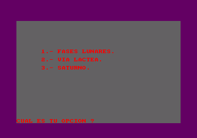 Fases Lunares es un programa didáctico, con el que aprenderás y comprenderás el porqué de las fases lunares, está compuesto por tres pantallas en las que aparte de unos textos explicativos, se representan en forma animada el giro de la Luna alrededor de la Tierra, y la sucesión de las distintas fases. No necesita ningún tipo de instrucción especial, ya que conforme se va ejecutando el programa va indicando cuándo hay que pulsar alguna tecla. No olvidar que para finalizar en cualquier punto del programa hay que pulsar F. AS