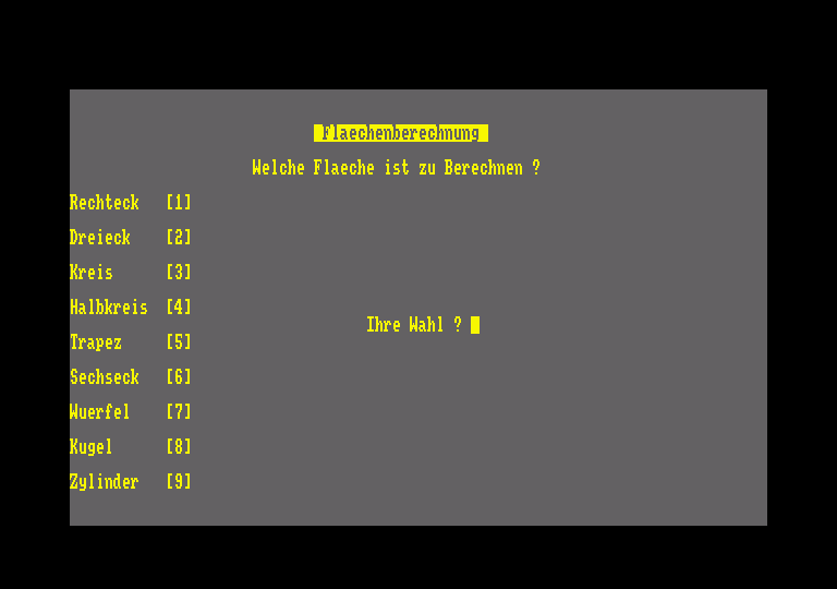 Mit diesem Programm können Mantel- und Oberflächenberechnungen von verschiedenen Körpern durchgeführt werden. SA