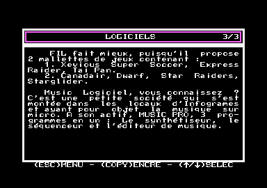 Floopy est un canard sympa qui cache ses yeux derrière une paire de lunettes. Peut-être est-ce à force de regarder l'écran ? Floopy est un canard digital. Caisse ? Je voulais dire, qu'est-ce ? Tout bonnement un magazine enregistré sur disquette, eh oui ! Pourquoi ? Peut-être pour préserver nos forêts ?Bon que dire d'autre sinon que Floopy pourrait d'ici peu présenter, en plus des textes rédactionnels, des trucs et astuces et des programmes, quelques belles images qui agrémenteraient sa maquette. Il est édité par Infomédia, une société de Perpignan.