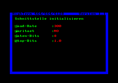 HighTerm ist ein komfortables DFÜ-Programm für die Schneider-RS-232-Schnittstelle "HighTerm” wurde für die Schneider-RS-232-Schnitt-stelle programmiert und ist deshalb nur auf dieser bzw. auf einer kompatiblen Schnittstelle lauffähig. Das Programm eignet sich für alle CPCs mit Diskettenlaufwerk. Die Schnittstelle wird unter "HighTerm” voll ausgenutzt, da die Parametereinstellung sehr umfangreich ist. Wichtig vor Inbetriebnahme ist, daß Sie die Schnittstelle angeschlossen haben (das Netzteil nicht vergessen), da sonst nichts gesendet werden kann. Das Programm HIGH-TERM.COD muß sich auf derselben Diskette befinden, auf der auch das Hauptprogramm abgespeichert wurde, da der Maschinencodeteil HIGHTERM.COD vom Hauptprogramm nachgeladen wird. Deshalb darf nach dem Start die Diskette nicht vorzeitig entfernt werden. Bei der DFÜ (Datenfernübertragung) ist es besonders wichtig, daß das Programm schnellstmöglichst betriebsbereit ist. "HighTerm” hat deshalb die Parameter auf den Standard 8/N/1 (8 Datenbits, 1 Stoppbit und keine Parität) schon voreingestellt. Im Parameter-Menü müssen Sie also nur noch RETURN bzw. ENTER drücken und befinden sich sofort im Kommunikations-Modus. Sie müssen also keine Menüs etc. mehr anwählen. Die Menüsteuerung von "HighTerm” ist denkbar einfach. Drücken Sie dazu CTRL TAB, um in das Hilfsmenü zu kommen. Nur dort können Sie irgendwelche Benutzereingaben machen. Sie können also nicht schon im Kommunikations-Modus ”F8” für "Goodbye” eingeben. Zuerst muß immer das Hilfsmenü mit CTRL TAB aufgerufen werden, um in unserem Fall mit ”F8” des Zehnerblocks Funktion 8 anwählen zu können. Auch erwartet der Computer erst eine Eingabe, wenn in der letzten Zeile "Ihre Eingabe” zu sehen ist. Es kann durchaus sein, daß erst noch Dateien ordnungsgemäß geschlossen werden müssen und es daher ein paar Sekunden dauert, bis diese Meldung erscheint. Beim Start des Programms gelangen Sie in ein kurzes Menü, in dem die aktuellen Parameter zu sehen sind. Wollen Sie die Baudrate verändern, so betätigen Sie die Taste ”B”. Wollen Sie anschließend die Parität einstellen, drük-ken Sie die Taste "P”, und es werden die möglichen Einstellungen angezeigt. Der jeweilige Buchstabe, den Sie betätigen müssen, wird invers ausgedruckt. Sicher ist Ihnen aufgefallen, daß die Parameter nach einem Neustart immer die gleiche Einstellung haben. Das ist beabsichtigt. Es handelt sich hier um die sogenannte Standard-Einstellung 8/N/1 (8 Datenbits, 1 Stoppbit und No Parity). Diese Einstellung haben fast alle Mailboxen oder Datenbanken. Wenn Sie also mal nicht sicher sind, welche Einstellung eine bestimmte Gegenstelle hat, wählen Sie zuerst die Standardeinstellung. Ist alles richtig eingestellt, müssen Sie nur RETURN/ ENTER drücken, und die Schnittstelle wird in der gewünschten Einstellung initialisiert. Parameter "Baudrate: 600,300,150,50 Danach gelangen Sie in den Kommunikations-Modus. Betätigen Sie dort CTRL TAB, und schon befinden Sie sich im Hilfsmenü. Hier können Sie die jeweiligen Programmteile anwählen, indem Sie nur die entsprechende Funktionstaste bzw. numerische Taste drücken, und schon wird der Befehl vom Programm ausgeführt. 1. Kommunikations Modus Um mit einer Mailbox in Verbindung zu treten, müssen Sie diesen Modus wählen. Alle Zeichen, die Sie oder die Gegenstelle über die Tastatur eingeben, werden gesendet, auch alle CTRL-Codes (CTRL X, C, S, Q usw.). Dieser Programmteil arbeitet ohne Echo, d.h., Sie können Ihre Eingabe nur sehen, wenn die Gegenstelle diese auch wieder zurücksendet, was allerdings üblich ist. 2. Download Mit Download werden die gesendeten und empfangenen Texte auf Diskette protokolliert, ufld mit dem gerade aktuellen Dateinamen wird ein ASCII-File abgelegt. Ebenso wie beim Upload wurde hier das XON/XOFF-Protokoll gewählt, das wohl am bekanntesten ist. Wenn das Programm auf Diskette schreiben muß und keine Daten mehr empfangen kann, wird CTRL S gesendet. Die Gegenstelle weiß nun, daß sie keine Daten mehr senden darf. Ist der Schneider-Computer mit dem Abspeichern fertig, wird CTRL Q übertragen, und schon weiß die Gegenstelle Bescheid, daß wieder gesendet werden darf. Es gibt jedoch einige Mailboxen (insbesondere private), die ein CTRL S nicht sofort verarbeiten, d.h., es werden noch ein paar Zeichen übertragen. Diese Zeichen (1-4 Stück) werden "verschluckt”. Das kann man aber in den meisten Fällen leicht verschmerzen. 3. Upload Wollen Sie über die Schnittstelle ein ASCII-File übertragen, wählen Sie diesen Menüpunkt an. Der aktuelle Dateiname wird verwendet. Gegebenenfalls sollten Sie ihn vorher mit Menüpunkt 4 ändern. "HighTerm" besitzt beim Upload vier verschiedene Einstellungen. Es handelt sich um sogenannte "DELAYs” (Verzögerungen). Das Programm bremst dabei die Übertragung etwas, was manchmal nötig ist. Haben Sie Ihren gewünschten Modus gewählt (A, B, C, D), so wird das File übertragen, bis es beendet ist (Zeichen 1Ahex). Um vorzeitig zu unterbrechen, ist CTRL TAB zu drücken. Wenn Sie Basic-Programme übertragen wollen, muß das Programm als ASCII-File vorliegen. Durch folgende Befehlseingaben ist dies möglich: LOAD ”PROGRAM.BAS” Jetzt kann auch ein Basic-Programm über die Telefonleitung übertragen werden. Für getippte Texte benötigen Sie ein Textverarbeitungsprogramm, weiches die Texte im ASCII-Format ablegt. Dazu gehört z.B. der "MAXAM” Text-Editor, "Tasword 464” + "Tasword 6128", "Wordstar” und "Easy Amsword”. Sicher gibt es auch noch andere. Versuchen Sie einfach einmal, ob Ihre Textverarbeitung die Files ebenfalls im ASCII-Format ablegt. Im Upload-Modus wird ein XON/XOFF entsprechend vom Programm verarbeitet. 4. Dateinamen ändern Drücken Sie die Taste ”4", fragt das Programm nach den gewünschten Dateinamen. Durch einfaches Betätigen der RETURN- bzw. ENTER-Taste wird der momentan aktuelle Name wieder verwendet. Bitte beachten Sie, daß immer eine Ext