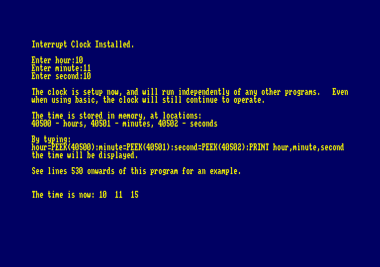 It's always been a pity that the CPC didn't have built-in real-time clock. It looks like R S Meston part of the way to a solution, though, with this interrupt-driven clock-type thingy.
