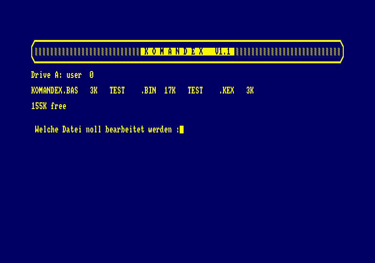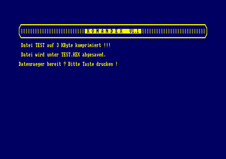 Störte es Sie auch schon, daß Ihr CPC Grafiken recht verschwenderisch auf den wertvollen 3-Zoll-Diskeiten speichert? Dann empfehlen wir Ihnen "Komandex", den Bilderpacker. Der CPC kann Bilder in verschiedenen Auflösungen darstellen Doch braucht er beim Speichern auch ziemlich viel Platz auf der Diskette. Diesen Platz kann man besser nutzen: mit Komandex. dem Bilderpacker und -entpacker. Das eigentliche Programm besteht aus zwei Heilen, dem 'Einpacker'- und 'Aus-packer" Beide Programme werden über ein Menü gesteuert. das den Modus abfragt, in dem das Bild gespeichert wurde Schon ist das Bild geschrumpft. Der Entpacker ist als Maschinenroutine oberhalb des Bildes im Bereich HEX B000 bis HEX B035 abgelegt Ein CALL &FFBC genügt und das Onginalbild ist wieder da. So kann man eine Diasch au mit wenig Platzbedarf realisieren. Schalten Sie jedoch zuvor Zusatzprogramme ab, die diesen Bereich belegen. Die Programmzeilen ab 800 speichern Sie als getrenntes Programm mit "ENTKEX.BAS" Es dient nur zum Darstellen von Bildern.