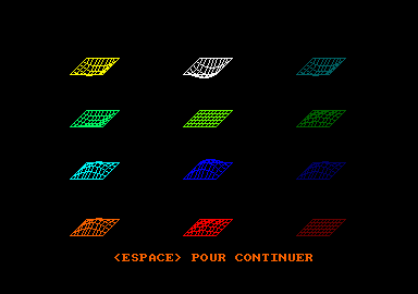 D'ordinaire, le Ku Klux Klan est loin d'œuvrer pour le mélange des modes et des couleurs. C'est pourtant ce que propose le programme ainsi malicieusement nommé, offrant la possibilité de définir dans un même écran, une fenêtre pour chacun des modes (soit quatre fenêtres indépendantes). Le lancement du premier programme créé et sauvegarde le fichier binaire "KLUXKLAN". Pour disposer des commandes ci-dessous, il convient de taper :MEMORY40999 : LOAD "KLUXKLAN.bin": CALL 41560 Nouvelles commandes |MARCHE : active les quatre fenêtres. |STOP : désactive les quatre fenêtres. |MODE, < numéro de la fenêtre entre 1 et 4 >, < mode entre 0et3> : donne le mode de la fenêtre. Le mode 3 est identique au mode 0. sauf qu'il ne dispose que de 4 couleurs comme le mode 1. |INK, < numéro de la fenêtre entre 1 et 4 >, < encre entre 0 et 15 >, < couleur n° 1 entre 0 et 26 >, < couleur n0 2 entre 0 et 26 > : sélectionne les couleurs. Le clignotement ne peut être ralenti, mais il permet de créer des nuances. La 2e couleur est impérative. |ECRITURE, < mode désiré > : Le Basic écrira, dessinera dans le mot désiré. Démonstration Le second programme propose une brillante démonstration des commandes précitées.