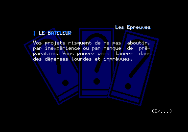 Toujours fervent supporter du CPC, la société bordelaise Esat Software propose une nouvelle gamme de logiciels. Il s'agit de la collection Esoteric. Ces logiciels transcrivent sur micro les différentes disciplines des arts divinatoires. Le premier d'entre eux. le Taromancien, est un logiciel sans grandes prétentions, qui simule le tirage des lames de tarot et vous en donne une interprétation immédiate dans des domaines toujours hautement intéressants : l'amour, l'argent, la santé et le boulot. Le Taromancien ne nécessite aucune connaissance des arts divinatoires et convient à tous les publics. Seule restriction, il ne tourne que sur les CPC équipés de 128 Ko de mémoire vive.
