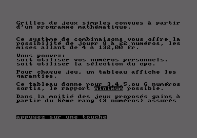 CPCrulez[Content Management System] v8.732-desktop Page créée en 609 millisecondes et consultée 313 foisL'Amstrad CPC est une machine 8 bits à base d'un Z80 à 4MHz. Le premier de la gamme fut le CPC 464 en 1984, équipé d'un lecteur de cassettes intégré il se plaçait en concurrent du Commodore C64 beaucoup plus compliqué à utiliser et plus cher. Ce fut un réel succès et sorti cette même années le CPC 664 équipé d'un lecteur de disquettes trois pouces intégré. Sa vie fut de courte durée puisqu'en 1985 il fut remplacé par le CPC 6128 qui était plus compact, plus soigné et surtout qui avait 128Ko de RAM au lieu de 64Ko. |
