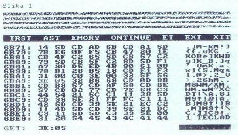 Bližnjica k nesmrtnosti Program, o katerem bo tukaj govor, je namenjen predvsem iskanju pokov (zato tudi ime POKEFINDER), ki omogočajo. da pridemo do konca igre. Za nekatere lahke igre poki ne bodo potrebni, druge pa je brez pokov skoraj nemogoče končati. Takrat vam bo lahko ta program v veliko pomoč. Glede na to, da so komercialne igre napisane v zbirniku, je treba nekoliko poznati ta jezik, že zaradi tega. ker program POKEFINDER ne vsebuje disasemblerja. Toda če imate pri roki tabelo s kodami mikroprocesorja Z-80, ne bi smelo biti problemov. Program je napisan tako. da bo čim bolj enostaven za uporabo, in mislim, da res ne bo težavno razumeti in obvladati 7 ukazov, ki jih ponuja. Dolg je 1456 (&5B0) bytov in se naloži na naslov &A000. potem pa se sam preseli v video pomnilnik in ostane v njem ves čas. dokler ga ne izbrišete z ukazom MODE x ali dokler ne resetirate računalnika. Program je v video pomnilniku zato, ker tako ostane na voljo ves pomnilnik, v katerega se običajno nalagajo igre in drugi programi. Iz POKEFINDERJA je v vsakem trenutku mogoča vrnitev v basic. tako da lahko vedno kaj izračunate, naložite, posnamete ipd. Vseh sedem razpoložljivih ukazov v programu je vedno navedenih v šesti vrstici na zaslonu (prve štiri vrstice zaseda sam program), vsak ukaz pa aktiviramo z njegovo začetno črko, kot je poudarjeno v ukazni go tipko pa v program. Po izstopu v basic lahko spet stopite v POKEFINDER. če vtipkate ukaz call &c000 ali pritisnete na piko v numeričnem delu tipkovnice, ki ji je dodeljen isti ukaz. Ko prepišete program z listinga in ga poženete, se bo posnel v dvojiški obliki (če pri prepisovanju stavkov DATA niste naredili nobene napake). Za vsak primer posnemite tudi verzijo v basicu. Nato vtipkajte NEW in prepišiti naslednji kratki program v basicu. ki bo poskrbel za nalaganje in prvi start POKEFINDERJA: 10 OPENOUT "D": MEMORY &1FF: CLOSEOUT 20 LOAD "!POKEFIND.BIN": CALL &A000: NEWZdaj to posnemite s SAVE "PF" Tako boste lahko POKEFINDER prihodnjič naložili in pognali z RUN"PF.Vse. kar smo opisali doslej, bomo preizkusili s stvarnim primerom. Seveda sem izbral igro. za katero je POKE enostavno najti. V vseh drugih primerih boste uporabili podobno načelo, le da je med igrami nekaj razlik, te pa boste zlagoma obvladali z vajo. Igra je COLISEUM firme TOPOSOFT, ki sem jo našel v Futuresoftovem kompletu k-72. Najprej naložimo POKEFINDER, nato gremo v basic in z load "coliseum.bin naložimo igro v pomnilnik. S pritiskom na numerično piko spet stopimo v POKEFINDER in določimo meje iskanja (te podatke izluščimo iz glave igre). Za to igro so podatki naslednji: naslov nalaganja = &1E98, dolžina - Ä8867, začetni naslov &1E98 Z ukazom FIRST postavimo začetni naslov področja iskanja na 1E98, z LAST pa končni naslov na A6FF (1E98 + 8867 - A6FF). Znotraj navedenega področja je vsa igra. Zdaj lahko začnemo iskati. Med igranjem igre smo ugotovili, da ima igralec na začetku pet življenj (vidas). zato bomo poiskali. kje vse v igri se vrednost v registru A postavi na 5. Iz tabele kod za procesor Z-80 vidimo, da ima koda. s katero se register A polni z določeno vrednostjo, vrednost &3E. Glede na to. da nas zanimajo mesta, na katerih se v register A vpiše 5, z ukazom GET poiščemo niz 3E:05 (glej sliko 1). Z uporabo tega ukaza in ukaza NEXT bomo ugotovili, da je na podanem področju ta niz na treh mestih: na naslovu &6BA9 (vsebina: 3E 05 32 B6 68 ..), &6E6C (vsebina: 3E 05 B1 32 EE 5F...) in &6E90 (vsebina: 3E 05 32 EF 5F ...).