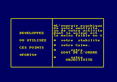 Pour la détente, logiciel ETL Soft, pour CPC 464, 664 et 6128 : Psykiat (analyse caractérologique) sur disquette et cassette (140 FF).   TEST DE CARACTERIOLOGIE