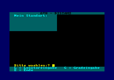 Mit diesem Programm kann man jede Entfernung auf der Erdkugel berechnen (Gradeingabe oder Locatorein-gabe). Ein Amateurfunkprogramm — auch für den Nichtfunker höchst interessant. (Reinhard Pimbacher), SA