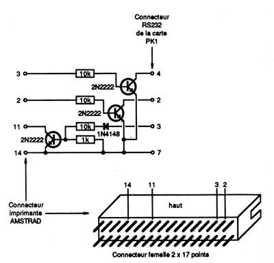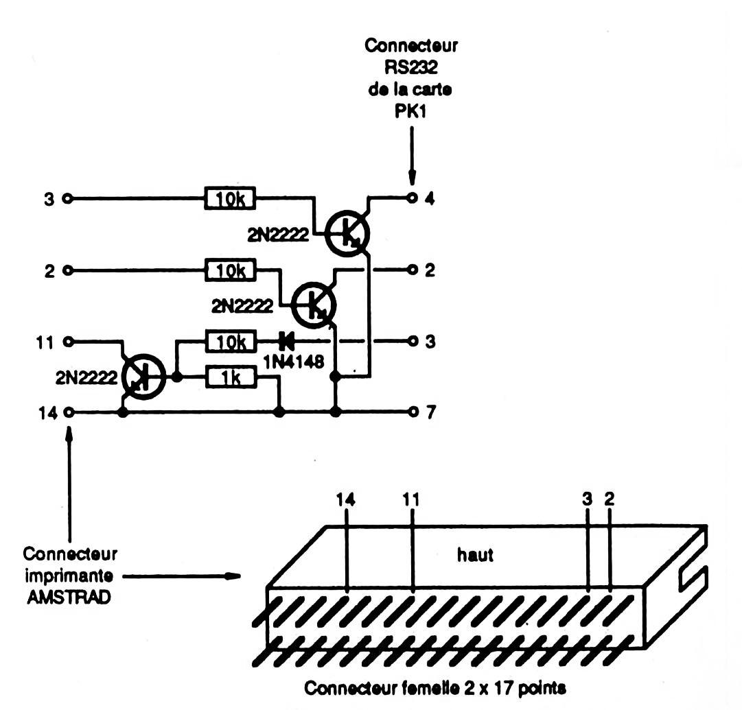 Quand on veut connecter une carte PK1 à un Amstrad CPC, on a deux possibilités :- réaliser une interface RS232;