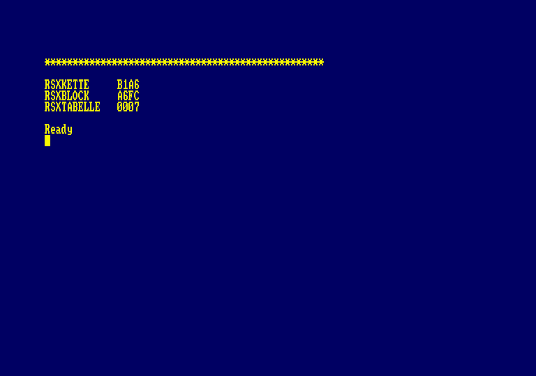 Hat man verschiedene Befehlserweiterungen, gibt dieses Programm zu jeder die nötigen Informationen aus. Befehlserweiterungen sind eine feine Sache. Nur gibt es inzwischen so viele davon, daß es für die Anwendung schon wieder problematisch wird. Darf man eine Befehlserweiterung noch zuladen, wenn sich schon eine andere im Speicher befindet? Wenn erst der Rechner abstürzt oder hängenbleibt, ist es zu spät, darüber nachzudenken. Das Programm RSXINFO gibt alle nötigen Informationen über Befehlserweiterungen. Man muß dazu die in der eigenen Programmbibliothek vorhandenen Erweiterungen zunächst einzeln (später in den beabsichtigten Kombinationen) wie gewohnt laden und initialisieren. Anschließend wird RSXINFO geladen und mit RUN gestartet. Wird in Zeile 5 x=0 durch x=8 ersetzt, dann werden die Daten nicht auf dem Bildschirm, sondern auf dem Drucker ausgegeben. Die Grundinformationen stehen in einem 4 Byte langen RSX-Block, der 2 Speicheradressen enthält. Dieser Block wird bei der Initialisierung angelegt. Die eine Adresse (die ersten beiden Bytes) dient der Verkettung der RSX-Blöcke. Sie zeigt auf den jeweils nächsten Block, der zu einer vorher initialisierten RSX gehört, oder zu einem ROM). Der Anfang der kette steht bei der Systemadresse &B1A6 (B8D3 für CPC 664 und 6128).Die zweite Adresse zeigt auf die eigentliche RSX-Tabelle. Die ersten beiden Bytes davon zeigen wiederum auf die Liste der Befehlsnamen, danach folgen jeweils drei Bytes lange Sprungvektoren. RSXINFO gibt von links nach rechts aus: Die Adresse des Befehlsnamens, den Befehlsnamen, die Adresse des Sprungvektors, die drei Bytes, die dort eingetragen sind, und falls möglich, die Adresse der Befehlsroutine. Alle Werte sind hexadezimal. Die letzte bezieht sich in der Regel auf ein Erweiterungs-ROM. In den RSX-Block wird dazu für die RSX-Tabelle ein Wert kleiner als 256 eingetragen, was dann nicht mehr als Speicheradresse, sondern als ROM-Nummer interpretiert wird. Für das Betriebssystem geht die RSX-Kette dann in den ROMs weiter. Für RSXINFO ist an dieser Stelle Schluß, denn die ROM-Tabellen können in Basic nicht ausgelesen werden. Der zuletzt unter RSXBLOCK erscheinende Wert ist jedoch für eine bestimmte Anwendung sehr wichtig. Sollen Befehlserweiterungen gelöscht werden, ohne den ganzen Rechner zurückzusetzen, dann kann dieser Wert an die Anfangsadresse der Kette (&B1A6) gepoked werden, und der Speicher ist wieder frei. Eine einzelne Befehlserweiterung wird gelöscht durch Poken der RSXBLOCK-Adresse an die RSXKETTE-Adresse (zuerst das Low-Byte, dann das High-Byte, näheres in den Maschinensprachekursen). RSXINFO zeigt zunächst an, in welchen Adressbereichen Befehlserweiterungen arbeiten, so daß es möglich ist, Überschneidungen, durch die Störungen auftreten können, vorher zu erkennen. Für diejenigen, die Maschinensprachekenntnisse haben, gehen die Anwendungen noch weiter: Aus jeder Befehlserweiterung die besten Routinen 'raussuchen und zu einer Supererweiterung zusammensetzen. Von dieser RSX-Baustelle demnächst mehr im CPC Magazin. Gerhard Knapienski, CPC Magazin