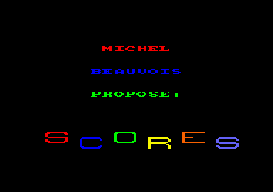 SCORES est un utilitaire permettant d'enregistrer des scores sur disquette ! Nombre de jeux n'enregistrent pas les scores. C'est dommage car quand on vient de mettre la pâtée à Momo, on est plutôt fier de l'afficher! Alors adieu aux petits bouts de papier et vive la disquette!