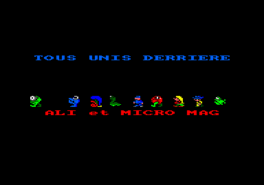 La sélection des 5 options disponibles se fait avec Espace et la validation par Enter. Ce type de menu utilisé dans nos précédentes récréations vous est désormais connu. Capture Il s'agit de l'option la plus importante. Il faut préalablement charger une planche de sprites en répondant aux demandes du logiciel. Celle-ci chargée, un petit rectangle de la taille de 2 caractères en mode 0, apparaît en surimpression sur la planche de sprites. Il peut aisément être déplacé avec les touches fléchées et sa taille se modifie par appui simultané sur Shift/ touches fléchées. Chaque sprite à sélectionner doit être recouvert par ce rectangle. Lorsqu'il est bien positionné CTRL/C effectue la capture. Que se passe-t-il à cet instant? Admettons qu'il s'agisse du premier sprite. Une petite routine en Assembleur, activée par le CALL &A0B0 de la ligne 870, transfère tous les octets contenus dans le rectangle en Ram à partir de l'adresse &8000. La variable BUF est l'adresse de transfert en Ram du premier octet (&8000 en l'occurence). FN PO (X,Y) est une fonction qui donne l'adresse écran du premier octet à transférer (octet du coin supérieur gauche de notre rectangle). La variable TABLE contient l'adresse des données du sprite, &9F00 pour le premier. Nous avons donc en &9F00 le nombre d'octets en largeur du sprite et en &9F01, la hauteur en lignes de pixels. En &9F02 et &9F03 l'adresse de stockage du sprite en RAM. Tout ceci se passe entre les lignes 920 et 930. A tout moment, en ligne 1, vous disposez de quelques renseignements sur la taille du rectangle ainsi que sur le nombre de sprites déjà capturés. La valeur qui apparaît en ligne 25 est l'adresse de stockage du prochain sprite en RAM. Lorsque la chasse est terminée CTRL/R assure le retour au menu. Affichage Par cette option, il est possible de visualiser un à un tous les sprites contenus dans votre fichier. Les renseignements de la table de données vous sont communiqués. Le passage d'un sprite à l'autre se fait par l'appui sur une touche. Le retour au menu est automatique à la fin du défilement. Animation Permet de vérifier le bon fonctionnement d'un déplacement. La superposition des sprites crée le mouvement comme dans un dessin animé. La vitesse étant réglable, tous les essais sont possibles. Sauvegarde/chargement Votre fichier complet, la sauvegarde s'impose. Durant celle-ci, divers renseignements sont fournis: nombre de sprites, mode, place disponibles et couleurs. L'option «Chargement» permet de récupérer un fichier afin de le compléter, les mêmes renseignements apparaissent. Aux Voleurs et Spritebox sont deux utilitaires complémentaires, simples et performants, avec lesquels, libéré des contraintes techniques, vous donnerez libre cours à votre imagination. Claude Le Moullec, MICROMAG n°9 (Janvier 90)
