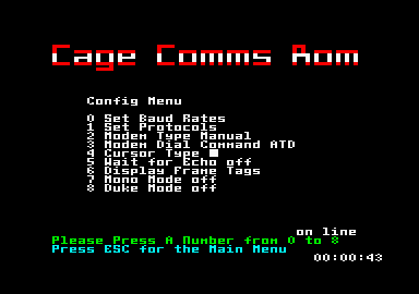 Amstrad CPC owners have never been over-spoilt when it comes to the quality of viewdata communications software available. Now. at last, someone has come to our rescue. Dave Gorski and Ian Hoare have produced the Cage Comms ROM. designed to put Amstrad owners back into the limelight. The manual - a 60 page offering - is written in an informal, friendly yet comprehensive style. The ROM can be fined as a direct replacement to the two Honeysoft roms that are in the Amstrad/PACE RS232 interface (or KDS modem), or it can be fitted into a ROM expansion box. Once the ROM is running you are presented with the main menu which consists of six options: