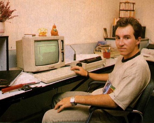 CARLOS Granados, Charly para los que le tratan, es uno de esos nombres legendarios en lo que se refiere a la programación de juegos de ordenador. Sus primeros contactos con computadoras tuvieron lugar hace ya casi diez años. «En un intercambio de instituto, fuimos a Estados Unidos. Por la mañana... había que elegir entre diversas actividades para ir a clase: física, química, había hasta mitología ¡Están locos esos yanquis! La primera vez me metí en un aula donde estaban enseñando lo que era el nivel más avanzado de física que impartían, equivalente a tercero de BUP. Recuerdo que estaban dando la estructura.de los átomos, así que yo me retiré. Cambié la física por la informática y no me arrepiento. A los tres días de leer el manual de Basic, hice mi primer programa: una máquina tragaperras.»  CARLOS GRANADOS (1989)