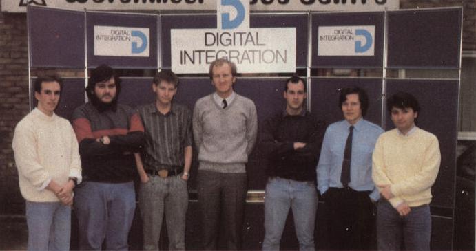 Meet the ground crew (Digital Integration 1989). From left to right: Tony West (Graphic design), Colin Boswell (ST Programming), Paul Hartgrave (ST/PC menu systems), Dave Marshall (concept and design), Marcus Goodey (PC Programming), Rod Swift (ST support) and Kevin Bezant (PC support). What a team!
