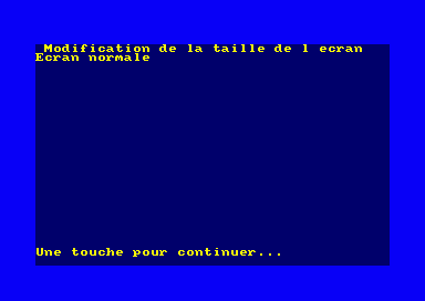 On peut s'appercevoir que les écritures ne sont pas vraimant bien possitioné, surtout pour la position 1,2, qui ne commance pas à la seconde ligne et au carctère 1. Mais c'est tout a fait normale, les fonctions sistèmes utilisé pour le positionnement ne save le faire qu'avec un écran normale, on a donc deux solution pour régler le problème : — Soit caculer nous même la bonne position, on sais que notre écran fait X*R1, et on cacule cela en programment. — Soit on refait les fonction de positionements ... la plus compliqué tout de même.