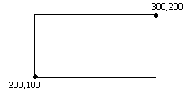 FIGURE 10.2 Les paramètres du rectangle sont convertis en hexadécimal avant d'être stockés en mémoire. Phase 1 100 = &0064 200 = &00C8 300 = &012C 2 = &0002 Phase 2 Les paramètres sont stockés avec l'octet faible en premier suivi immédiatement par l'octet fort. Le dernier paramètre entré est désigné par IX, les paramètres de l'exemple sont donc stockés comme suit: Case ; Contenu mémoire ; Hex Décimal IX+0 ;02 2 IX+1 ;00 IX+2 ;00 200 IX+3 ;C8 IX+4 ;01 300 IX+5 ;2C IX+6 ;00 100 IX+7 ;64 IX+8 ;00 200 IX+9 ; C8 En utilisant un décalage approprié on peut avoir accès a n'importe lequel de ces paramètres. Remarquez que chaque paramètre est stocké sur deux octets, un paramètre peut se trouver dans l'intervalle 0-65535. Maintenant, des coordonnées transmises par l'instruction externe, quatre couples de coordonnées doivent être dérivées pour décrire le rectangle. Considérons la Figure 10.3: