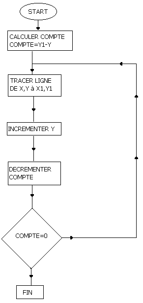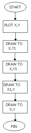 FIGURE 10.3 Comme les coordonnées X,Y et X1,Y1 sont transmises par l'Instruction externe on doit en déduire les coordonnées des deux autres angles et tracer le rectangle. Ceci est représenté par l'organigramme suivant: