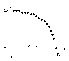 FIGURE 10.8 En incrémentant dans l'intervalle 0<alpha<pi/2 et en fixant un point aux coordonnées (X,Y) on obtient un quart de cercle. Ce quart peut être développé en un cercle plein. En admettant que le centre du cercle est le point d'origine du graphique, considérons la figure 10,9 pour le point X,Y.