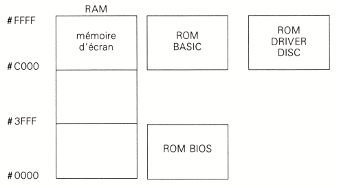 Référencées 4864, elles contiennent 64 kilo bits (soit 8 KO) par circuit. Il y en a donc 8 sur les CPC 464 et 664 et 16 sur le CPC 61 28. Elles sont implantées entre les adresses #0000 et #FFFF pour les CPC 464 et 664 et entre les adresses #0000 et #1FFFF pour le CPC 6128. L'implantation des mémoires RAM et ROM est la suivante :