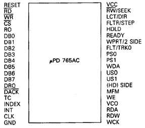 - RD : Entrée active à l'état bas. Cette broche est reliée au RD du Z80. Elle est active lorsque le microprocesseur désire lire des données sur une disquette.