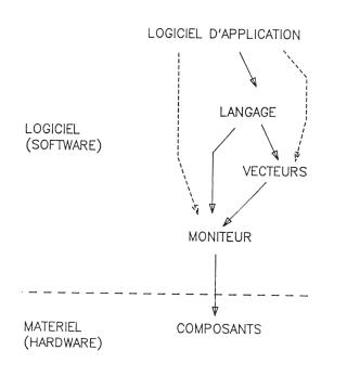 2/7.1 - Etude générale d'un système à microprocesseurIV. L'adressage des données - Le décodage La sélection de boîtier Toutes les données qui seront traitées par un microprocesseur se trouvent, ou se trouveront, dans des composants tels ROM, RAM ou composants d'interfaçage. Lorsque le microprocesseur désirera accéder à une donnée située dans un composant particulier, il ne faut surtout pas que d'autres composants restituent en même temps une des données qu'ils contiennent, de même pour l'écriture, qui doit s'effectuer, généralement dans un seul composant. Pour ce faire, chaque composant possède au moins une broche qui le sélectionne, dénommée selon les cas CS (Chip Select = sélection de boîtier), CE (Chip Enable = validation de boîtier) ou parfois EN (ENable = validation). D'autres composants nécessitent une broche supplémentaire dénommée OE (Output Enable = validation de sortie), comme bien souvent les ROM et les EPROM, qui permet de valider la donnée en sortie du composant. Ainsi, pour lire une donnée située dans un composant d'interfaçage X, il faudra activer ia broche CS de ce composant, et désactiver toutes les broches de validation des boîtiers des autres composants. L'adressage des données - le décodage Rappelons que pour accéder à une donnée, ou la sauvegarder, il faut connaître l'endroit où elle se trouve, c'est-à-dire son adresse. Avec un microprocesseur comportant 16 fils d'adresses, il est possible de réaliser 2 puissance 16 combinaisons différentes sur ces 16 fils, donc 65536 numéros d'adresses différentes (de &0000 à 8FFFF en hexadécimal). A chaque fois qu'il doit manipuler une donnée, le microprocesseur va émettre sur le bus d'adresses le numéro de la case où se trouve la donnée, on appelle cela l'adressage de la donnée. Lorsqu'une adresse est émise, il faut alors qu'un seul composant puisse la fournir. L'adresse fournie doit donc être décodée. Une partie de ce décodage est effectuée par le composant, car il possède des fils d'adresses, mais pas tous. Il faut donc réaliser une autre partie du décodage, en général avec certains, ou tous, fils d'adresses restants, pour sélectionner le boîtier. Prenons pour exemple un boîtier mémoire imaginaire comportant 10 fils d'adresses, un fil de sélection de boîtier, deux broches d'écriture et lecture et un bus de données (voir Fig. 8). Ce boîtier peut adresser de lui-même 2 puissance 10 = 1024 cases internes de huit bits. Avec 65536 cases mémoires possibles pour le Z80, nous pouvons donc placer 65536/1024 = 64 boîtiers mémoires de ce type, autour du microprocesseur. Chaque boîtier devra, par contre, se trouver sélectionner différemment selon l'adresse de la donnée à laquelle on désire accéder. On va donc effectuer un décodage sur les fils d'adresses restants. On pourra décider que le premier boîtier sera ainsi sélectionné lorsque tous les fils d'adresses de A10 à A15 seront à zéro (cette combinaison amenant un zéro sur le CS). Le boîtier numéro 2 sera sélectionné lorsque le fil A10 sera à 1, et les fijs A11 à A15 à zéro (cette combinaison devra amener un zéro sur le CS du deuxième boîtier). De même pour le troisième boîtier avec une combinaison différente et ainsi de suite. Ce décodage sera ainsi effectué grâce à des composants logiques câblés selon une logique dite combinatoire. Après décodage, le premier boîtier mémoire contiendra les données situées aux adresses 000000xxxxxxxxxx — x signifiant n'importe quel état 0 ou 1 — (donc de 0000000000000000 — &0000 — à 0000001111111111 — &03FF). Le deuxième contiendra les données situées aux adresses 000001 xxxxxxxxxx (de 0000010000000000 — &0400 — à 0000011111111111 — &07FF), etc. Supposons maintenant que nous n'ayons besoin que de 3 boîtiers mémoires de ce type.