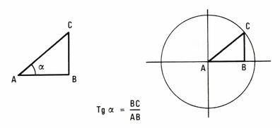 SIN = BC/AC et COS = AB/AC, d'où TAN = SIN/COS = (BC/AC)/(AB/AC) = BC/AB Remarques : a) Les commandes « DEG » et « RAD » peuvent être utilisées pour spécifier que le résultat doit être exprimé en degrés ou en radians. b) Sauf indication contraire, la valeur sera calculée en radians. |