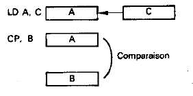 BIT 0 : C = Carry (retenue) Positionné par les opérations arithmétiques, décalages, comparaisons et les instructions SCF et CCF. Les opérations logiques AND, OR et XOR le mettent à 0. BIT 1 : N = Négative (négatif) Ce bit est à 1 si l'opération précédente était une soustraction ou une décrémentation. BIT 2 : P/V = Parity/Overflow (parité/débordement) Ce bit joue un double rôle en fonction du type d'instruction utilisée : P est positionné par les instructions logiques : – il vaut 1 si le nombre de bits à 1 de A est pair, – il vaut 0 si le nombre de bits à 1 de A est impair, V est positionné par les instructions arithmétiques : – il vaut 1 si un débordement s'est produit. BIT 4 : H = Half-Carry (demi-retenue) Utilisé par l'instruction d'ajustement décimal DAA. Reportez-vous à cette instruction pour avoir plus de détails. H = 1 signale qu'une retenue s'est produite sur le LSQ (Last Significative Quartet = quartet de poids faible) du registre A. BIT 6 : 2 = Zéro Positionné par toutes les instructions qui peuvent produire un résultat nul (AND, BIT, CP, DEC, etc.) Positionné à 1 par les instructions INDR, INIR, OTDR et OTIR. BIT 7 : S = Signe Donne le signe de la valeur testée. Positionné par les opérations logiques, arithmétiques, rotations et décalages. Si S- 1, la valeur est négative (bit 7 à 1 pour les valeurs sur 8 bits et bit 15 à 1 pour les valeurs sur 16 bits). Si S = 0, la valeur est positive (bit 7 à 0 pour les valeurs sur 8 bits et bit 15 à 0 pour les valeurs sur 16 bits). Le registre B peut être associé au registre C pour former le registre pair BC. Mais il est manipulé comme registre 8 bits par les instructions du type : – Faire une action, décrémenter B, et répéter l'action tant que B n'est pas nul, comme DJNZ, par exemple. Les registres C, D, E, H et L peuvent être utilisés sous forme de registres pairs BC, DE et HL. Ils permettent de faire des opérations sur 8 ou 16 bits avec ou sans retenue. Les registres IX et IY sont des registres 16 bits. Ils peuvent être utilisés comme les registres pairs BC, DE ou HL, mais sont obligatoires dans certains modes d'adressages indexés. Le registre SP (Stack Pointer ou pointeur de pile) donne l'adresse de l'élément mémoire le plus extérieur à la pile. Le registre I (ou IFF) donne le poids fort de l'adresse où va se débrancher le programme en cas d'interruption. Le registre R donne l'adresse de rafraîchissement dynamique des blocs de mémoire RAM. Nous n'en parlerons pas dans ce manuel, car il est quasiment inutilisé en programmation. Modes d'adressage Le terme « mode d'adressage » désigne la façon qui va être utilisée par le microprocesseur pour accéder à une information. Le Z80 possède 7 modes d'adressage : Immédiat, registre, indirect sur registre, direct, relatif, indirect indexé et bit. Examinons en détails chacun de ces modes : * Adressage immédiat La valeur se trouve dans l'instruction. Exemple : LD A,10H ou OR 45H