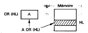 * Adressage indirect sur registre Le registre pair spécifié pointe sur une mémoire et l'opération est faite sur cette mémoire. Exemple : LD A,(HL) ou OR (HL)