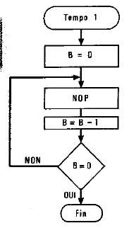 4/2 - Assembleur Z80 : Définitions et rappels de base4/2.3 - Les mots-clés de l'assembleur Z80 et leur utilisation I. Usage général et interruptions NOP : N° opération Indicateurs modifiés : aucun. Aucune action n'est effectuée, si ce n'est une perte de temps pour analyser le code et l'exécuter. Applications : C'est une instruction idéale pour créer des temporisations. Sachant qu'une instruction NOP prend 1 cycle machine (voir table en annexe) et que, sur AMSTRAD, un cycle machine prend 0,25 microsecondes, un NOP est donc exécuté en 0.25 microsecondes. Nous pourrons réaliser des temporisations de courte durée en mettant à la suite plusieurs NOP. 1 ; ORG 9000H 2 ; LOAD 9000H 3 9000 00 ;NOP ;0.25 microsec passées 4 9001 00 ;NOP ;0.25 microsec passées 5 9002 00 ;NOP ;0.25 microsec passées 6 ; ENDPour réaliser des temporisations plus longues, nous pourrons insérer une ou plusieurs instruction(s) NOP dans une boucle.Reportez-vous à la description de l'ordre DJNZ si vous ne connaissez pas son utilisation (voir partie 4 chapitre 2.3 p. 32). LD B,0 prend 2 cycles donc 0.5 microsecondes. DJNZ prend 2 cycles donc 0.5 microsecondes.