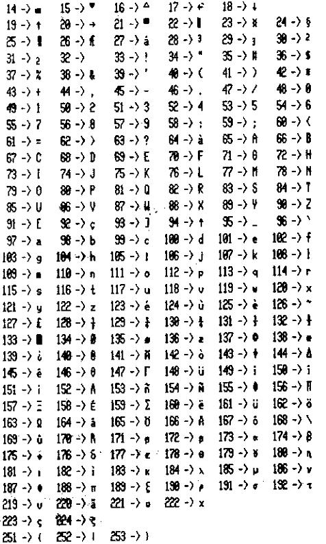 | F1 F2 F3 F4 F5 F9 F0 . | Median Compacta Data Run Palace Script Retour normale Soulignement Annule soul. | PRINT #8,CHR$(214) PRINT #8,CHR$ (215) PRINT #8,CHR$(216) PRINT #8,CHR$(217) PRINT #8,CHR$(218) PRINT #8,CHR$(246) PRIN T #8,CHR$(212) PRINT #8,CHR$(244) |