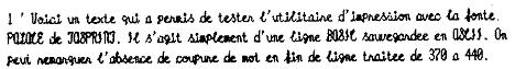 Nous vous proposons à titre d'exemple un utilitaire Basic qui permet soit d'entrer un texte ligne par ligne tout en l'imprimant dans la police souhaitée, soit de charger un texte sauvegardé sur le disque sous forme de fichier ASCII puis de l'imprimer de la même façon en évitant les coupures de mots en fin de ligne. Nous l'avons testé sur une imprimante DMP 2000 configurée en 89 caractères par ligne lors de l'installation des polices et il est très simple à adapter à un autre matériel.