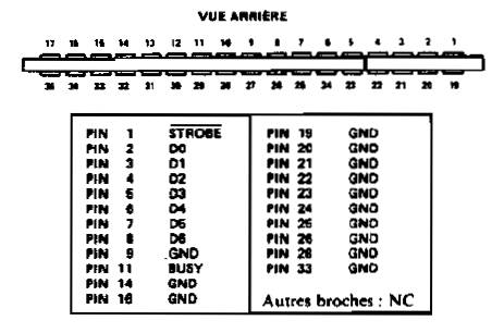 Le schéma du connecteur côté AMSTRAD est le suivant : Porte pour imprimante Le schéma du connecteur côté imprimante est le suivant :Porte pour imprimante
