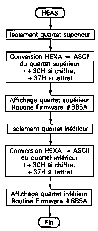 - Le contenu de cette mémoire est alors converti en ASCII et affiché par la routine HEAS ;