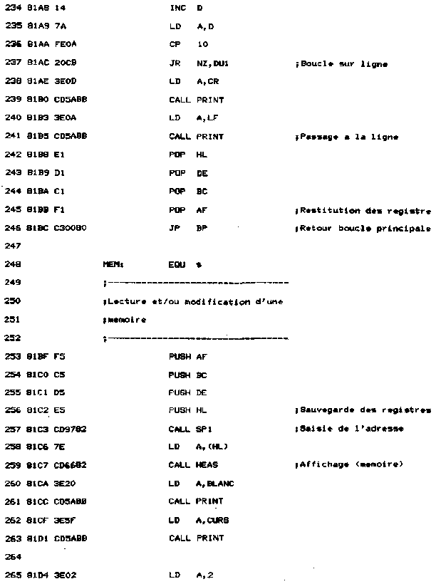IV. Affichage du contenu d'une mémoire- Les registres AF, BC, DE et HL sont sauvegardés en début de routine ;