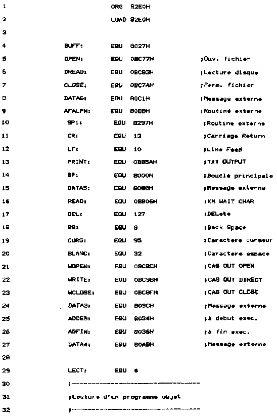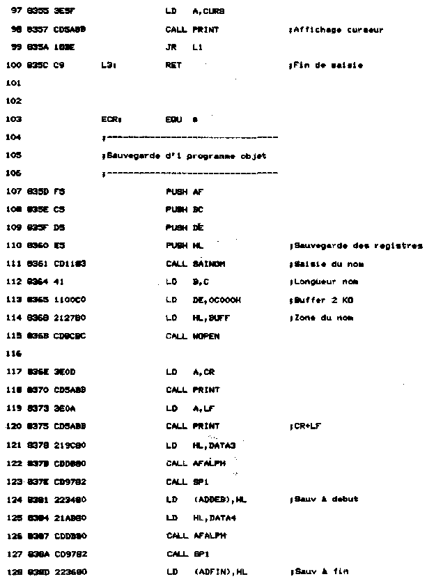 - Sauvegarde sur disquette d'un programme source éventuellement modifié, ou d'une zone mémoire;