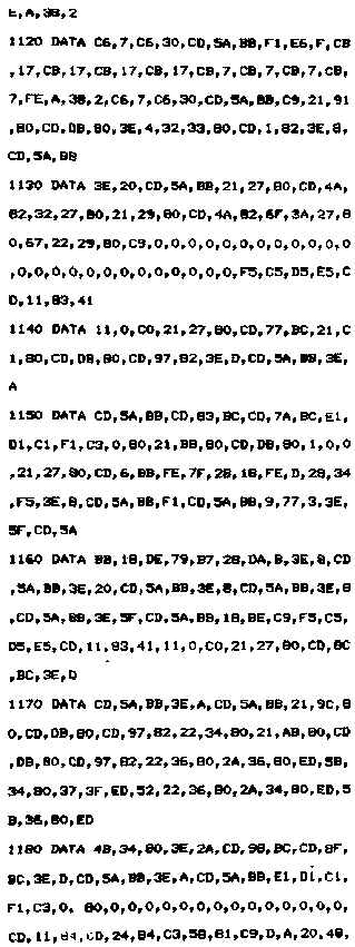 - Les données correspondantes sont alors envoyées vers le lecteur de cassettes ou de disquettes en utilisant la macro du Firmware située en #BC98 (CAS OUT DIRECT) ;
