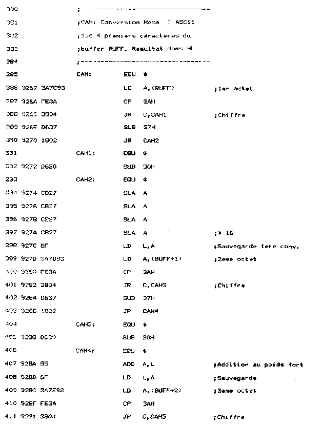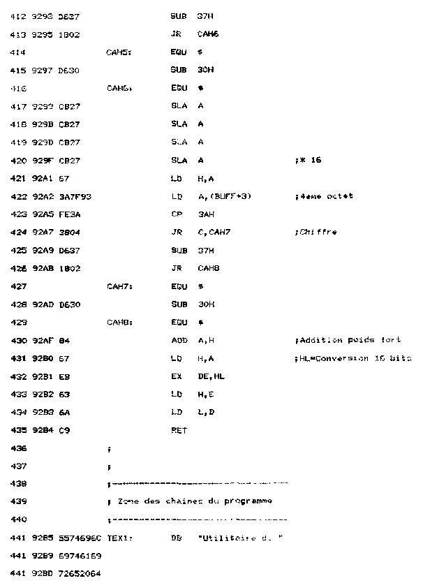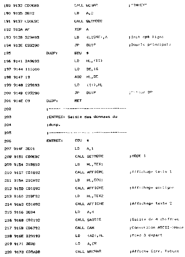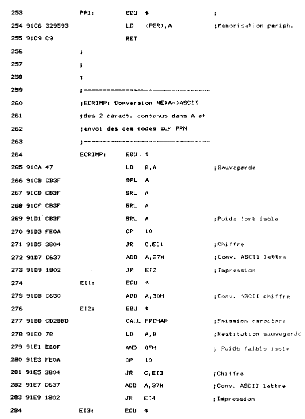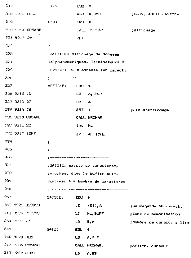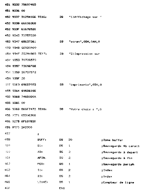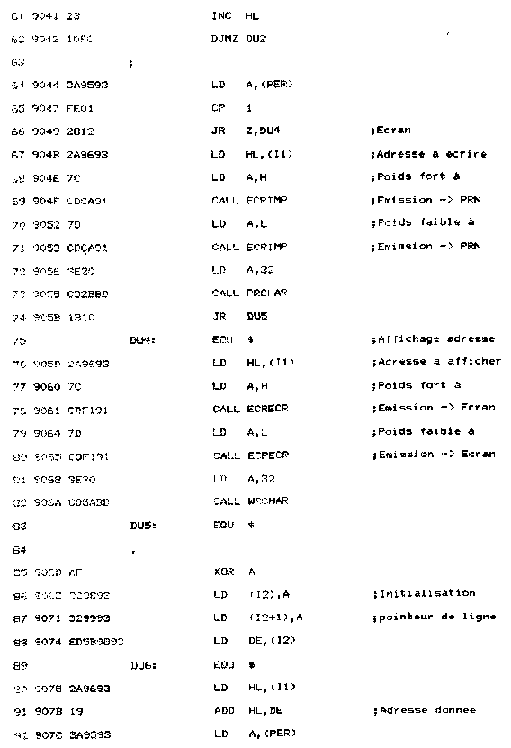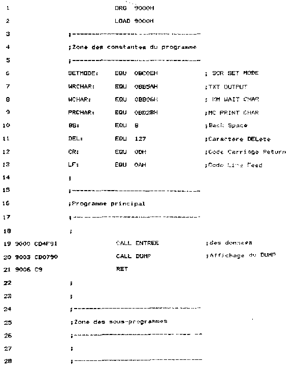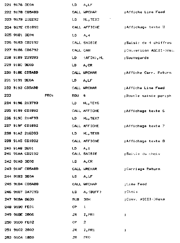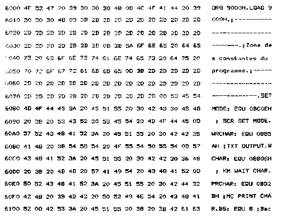 Le programme assembleur a été saisi sous « ZEN ». Les instructions LOAD et END ne sont pas forcément nécessaires avec d'autres assembleurs. Le listing du programme est le suivant :