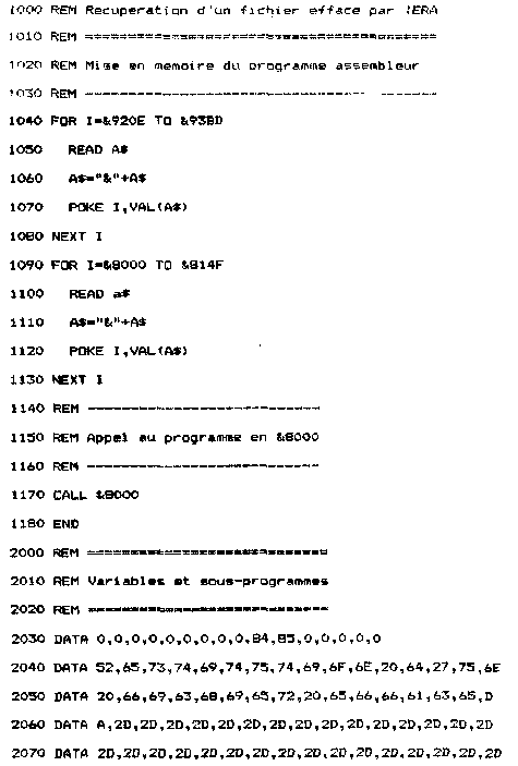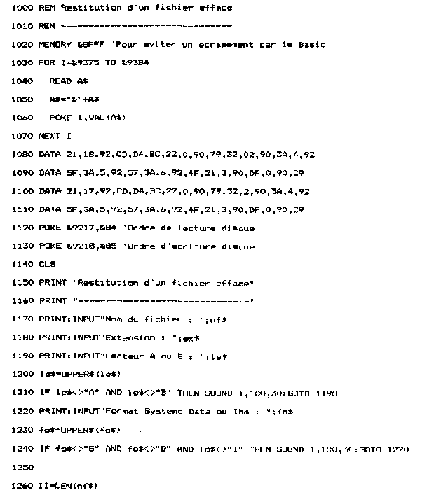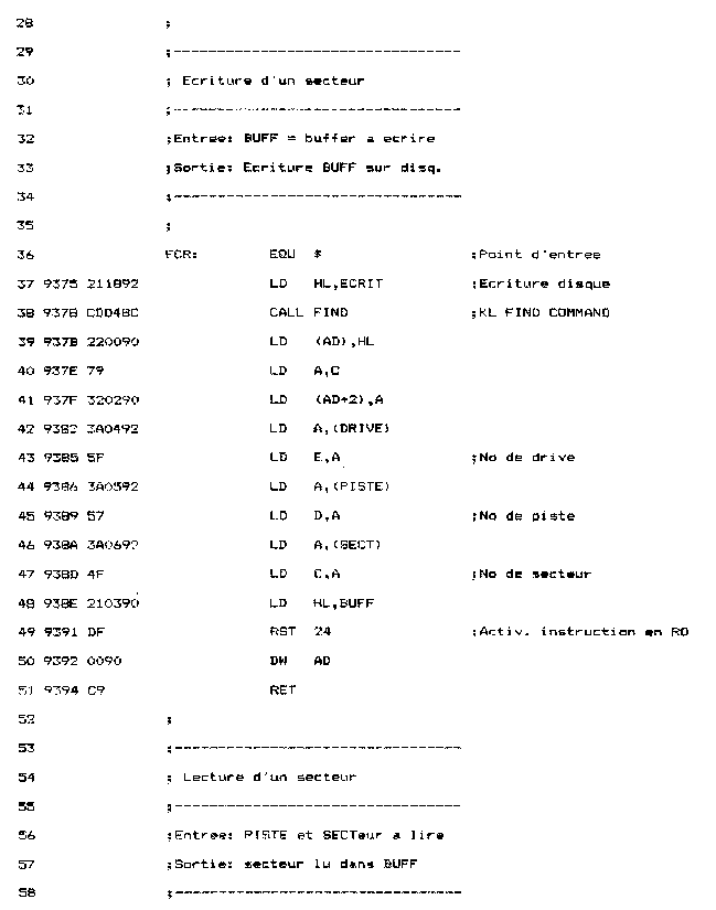 Programme de restitution de fichiers en version Basic * Les ordres « KL FIND COMMAND », « READ SECTOR » et « WRITE SECTOR » ne peuvent pas être utilisés facilement en Basic, c'est pourquoi nous allons développer un petit programme en assembleur pour lire et écrire un secteur quelconque de la disquette.