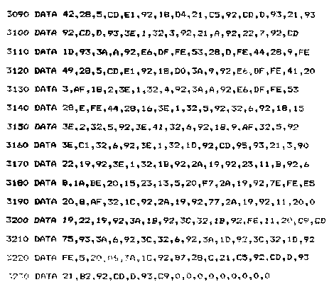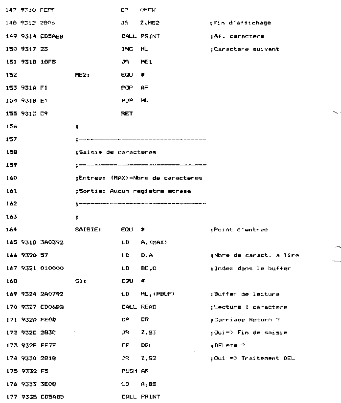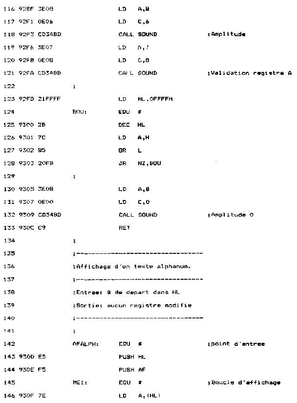Ce programme en Assembleur est en effet une concaténation des deux précédents. Il est implanté en # 9375 pour être identique au programme de restitution écrit totalement en Assembleur présenté par la suite. * Le programme Basic de restitution est relativement court, mais assez lent, c'est pourquoi on pourra référer une version assembleur.