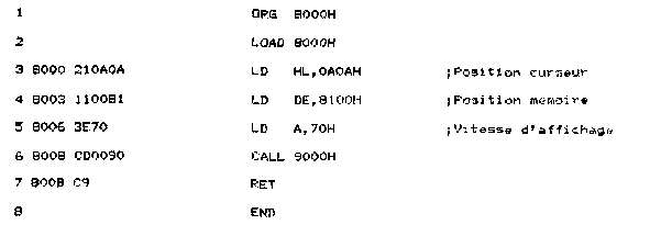 Le listing Assembleur est le suivant : Pour faciliter l'interfaçage, un programme Basic peut appeler ce programme Assembleur de la façon suivante :