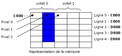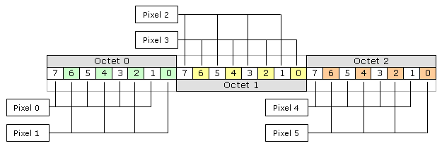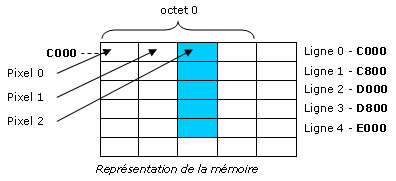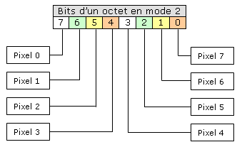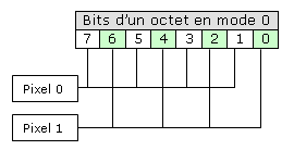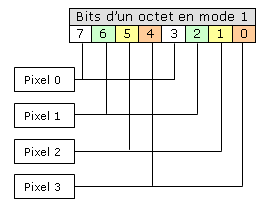 En mode 1 (4 couleurs, 4 pixels par octet) :