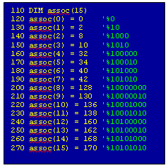 Si vous regardez bien ce tableau vous pouvez constatez que le masque des données de la couleur entrelacée est décalé de 1 bit vers la droite à chaque octet traité, 2 valeurs possibles car 2 pixels à afficher logique ! Même si vous ne trouvez pas cet exemple essentiel nous allons regarder le cas du mode 1 (4 couleurs, 4 pixels par octet).