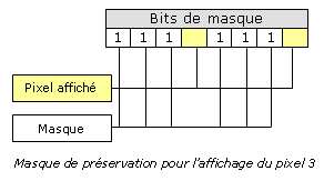| Pixel | Octet | Couleur entrelacée | Masque de préservation |