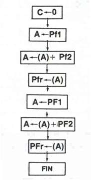 Méthode 2 : nous arrivons maintenant au problème de l'addition avec report automatique de la retenue. L'opération ressemble à ceci : A < – (A) + (adresse deuxième opérande) + C Dans cène méthode, nous allons devoir nettoyer le contenu du bit de Carry avant de pratiquer la première opération. Si nous oublions de réaliser ce nettoyage, nous risquons (une fois sur deux) d'ajouter à notre résultat de poids faible une retenue qui n'a rien à voir avec notre calcul. En revanche d'un point de vue stockage des données et des résultats, nous n'aurons pas de différence sensible avec la méthode précédente. Organigramme méthode 2