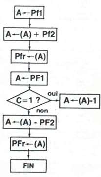 Encore une fois, je vous donne directement l'organigramme et l'algorithme de cette méthode de calcul sur seize bits. Si vous éprouvez la moindre difficulté à appréhender le raisonnement qui aboutit à ce résultat, reprenez la démarche explicitée antérieurement dans ce cours et effectuez une nouvelle fois l'ensemble du raisonnement Organigramme méthode 1